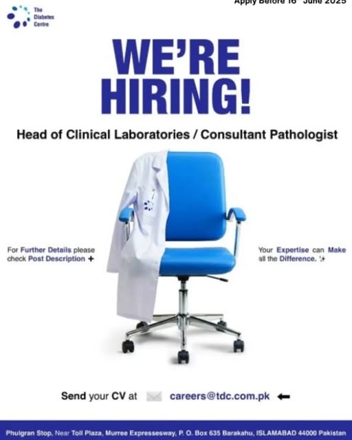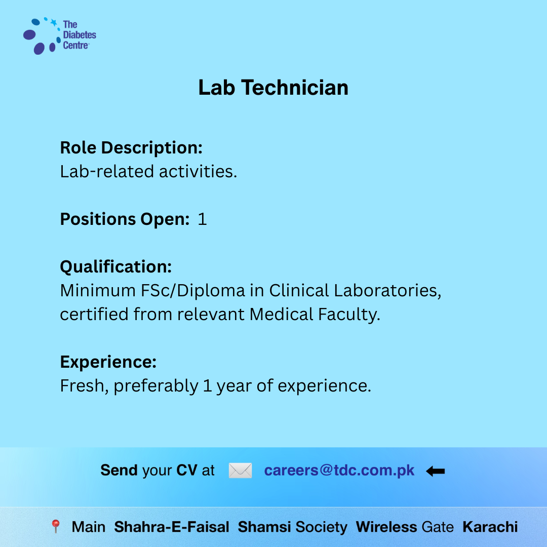 | 18 | Consultant Medical Specialist / Diabetologist (Full Time or Visiting) | Lahore |